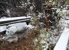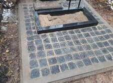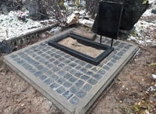 Могила после очередного захоронения, развалившийся бетонный цоколь |