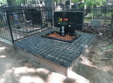 На данном месте захоронения нам предстояло провести следующие работы: поставить на место покосившийся памятник и положить на территорию участка гранитную брусчатку.