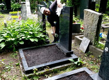Сметаем с бортов цветника лишнюю землю, после чего переходим к самим надгробьям: вытираем памятники, немного проявляя надписи на их поверхности. Параллельно с этим протираем цветники, окончательно удаляя рассыпанную в процессе посадки землю.